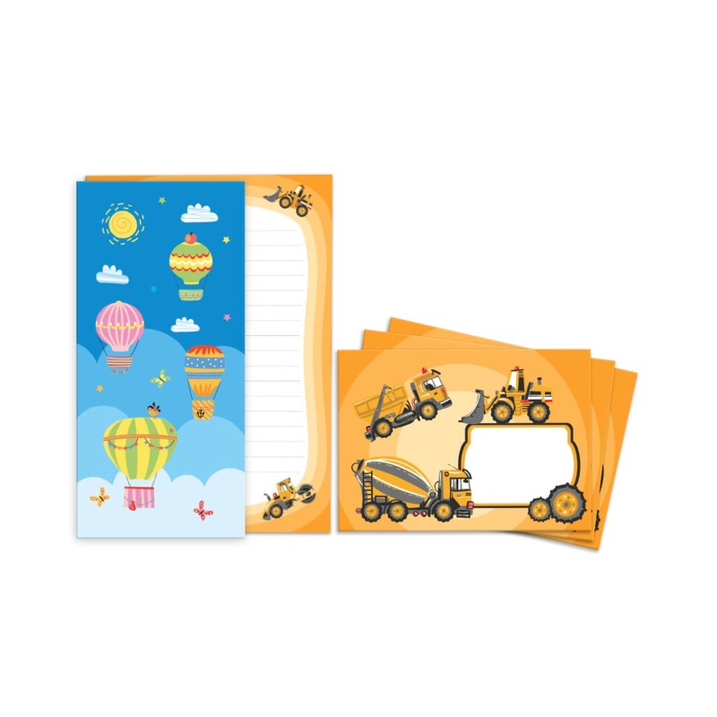 Writing Paper Set Letter Pad with Envelope for Children Construction Site Boy...