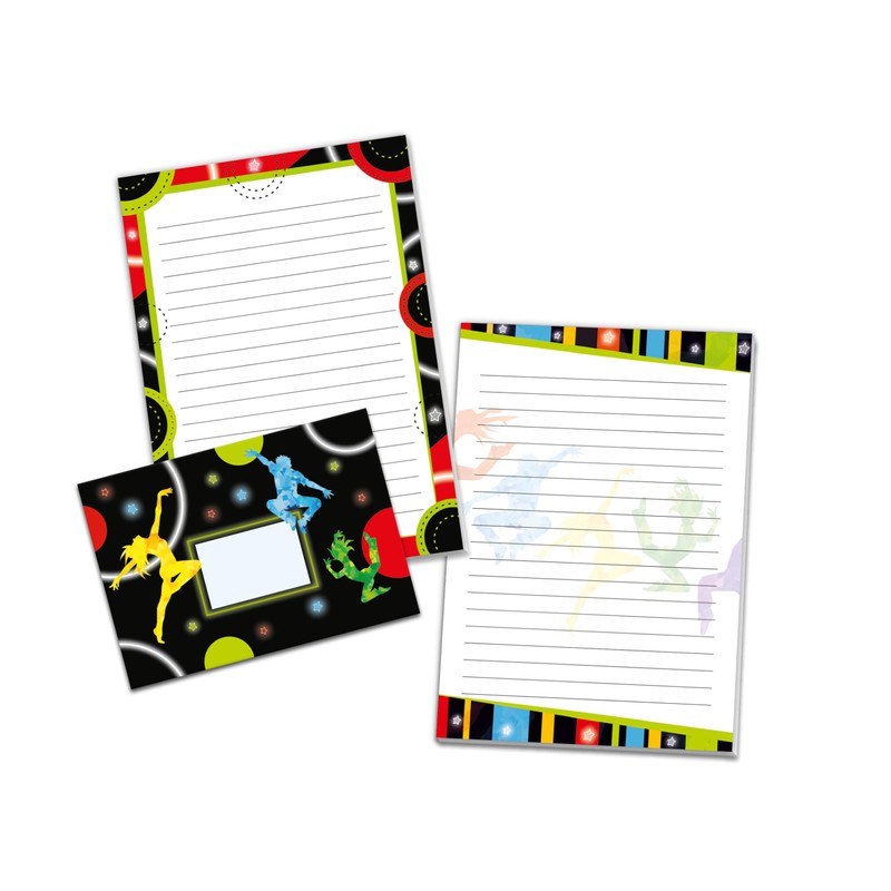 Writing Paper Set with 2 Writing Pads and 25 Envelopes for Children School Notepad Notepad (1 Pad "Disco" and 1 Pad "Dancer" A5 with 25 Sheets Each + 25 Envelopes)