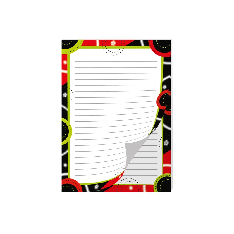 - Pad: pad is lined, has A5 farmat (14.80 x 21 cm) and 25 sheets (80 g paper) with glue binding at the top. The back is not printed. Block has reinforced cardboard backing.