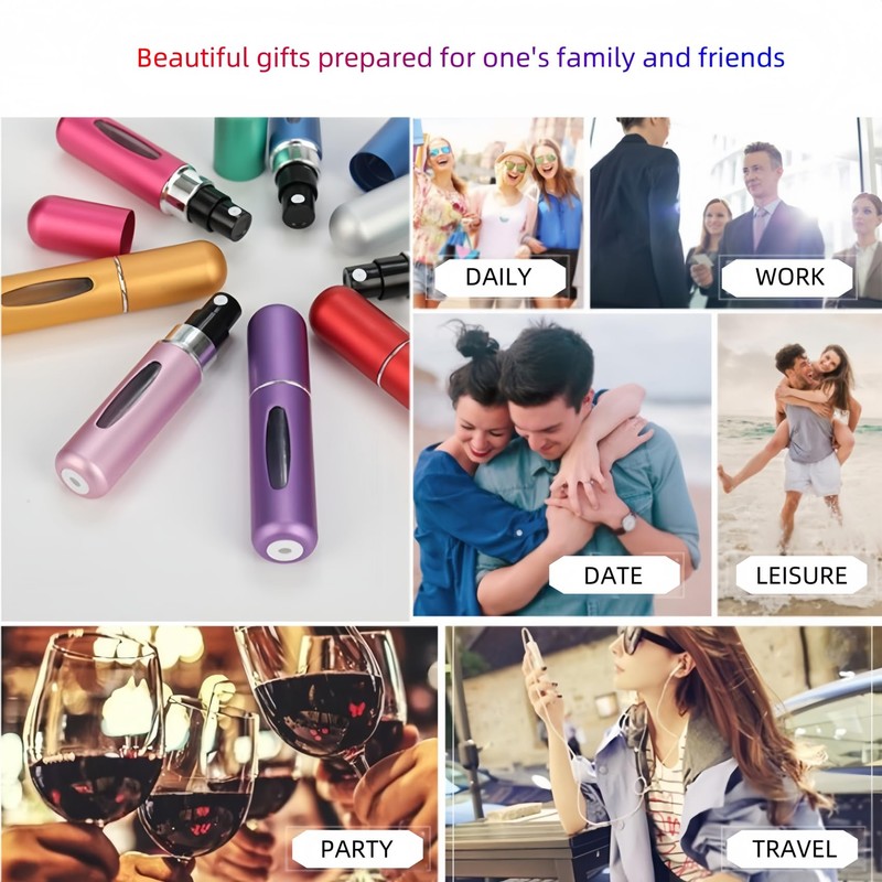 - This refillable perfume bottle travel set contains 8 bright and eye-catching colors, allowing you to easily distinguish different perfumes or liquids.