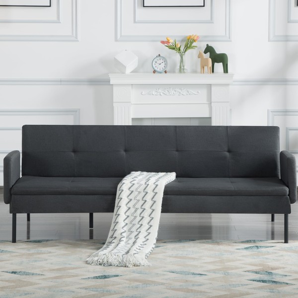 WRTEYEUI Convertible Sofa Bed Adjustable Couch Sleeper Folding Polyester Convertible Recliner Lounge Daybed for Living Room, Bedroom, Apartment, Office, Dark Gray, 75"x31.5"x26.4"