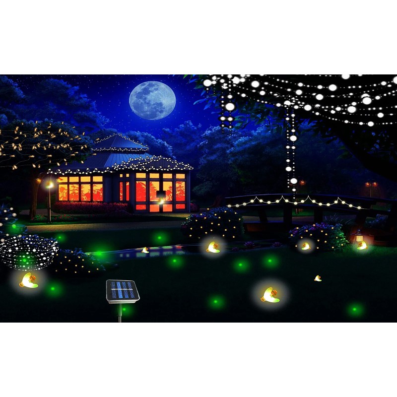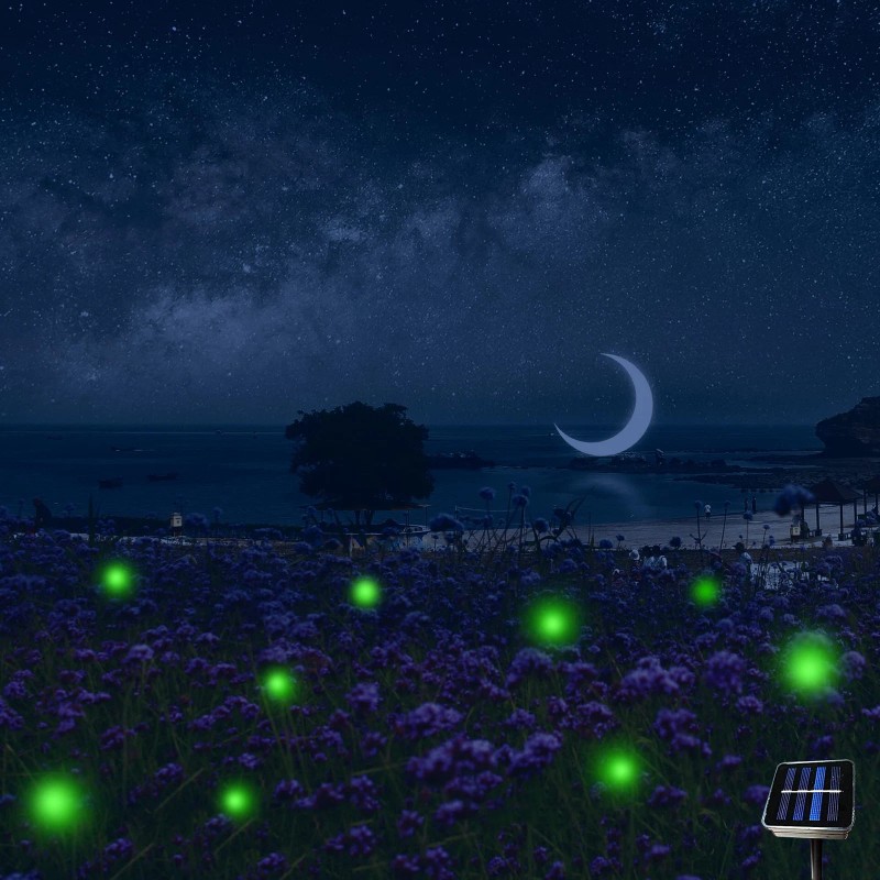 Solar and Light Sensor Technology with 9 Pulsating firefly light outdoor waterproof yellow-green LEDs, Provide charming and energy-saving fairytale decorations for your garden, fence, trees or pool area.