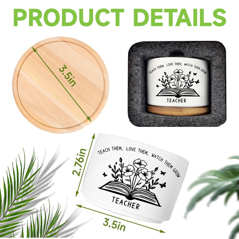 - Planter for Teacher Birthday: Crafted from premium ceramic, this 3.5 inch white succulent pot features a stylish wood tray. The pot is designed with various patterns and texts, adding a touch of elegance to any space