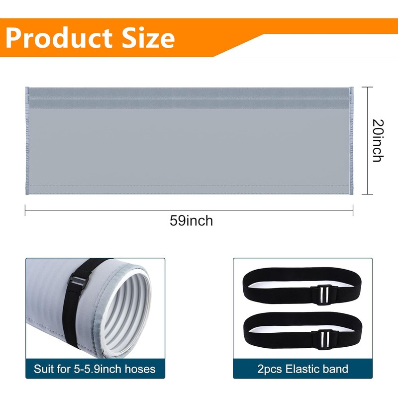 - 【Work for Universal AC Hose】This portable ac exhaust tube insulator sleeve length 59 inches and width 21 inches,it fits most ac exhaust hoses diameter of 5 to 5.9 inches. If the hose cover is longer than your hose, you can fold the extra length then, use the straps that comes with to fix it.