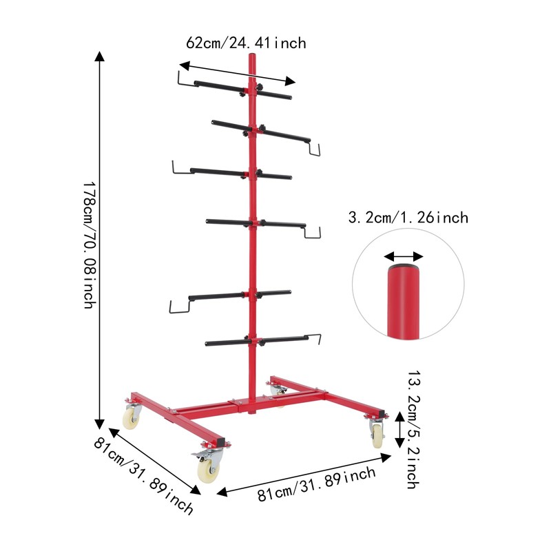 WsrrLun Panel Tree Paint Stand, Professional Automotive Paint Stand with 6 Hooks & 4 Universal Wheels, Adjustable Car Panel Holder for Auto Body Repair & Painting (31.89*31.89*70.08in)