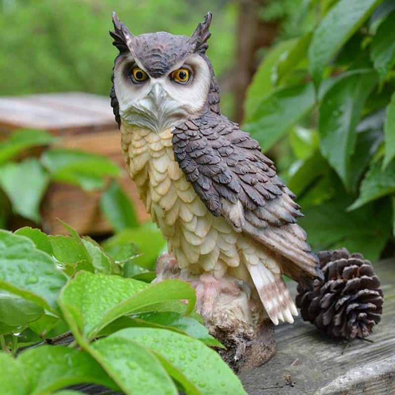 WSTERAO Decorative Owl Owl Bird of Prey Garden Figure Animal Figure Multicoloured Bird Scarer Owl Resin Garden Decoration Bird Decoration