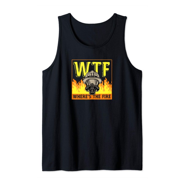 WTF Where's The Fire Funny Red Yellow Orange Firefighter Tank Top