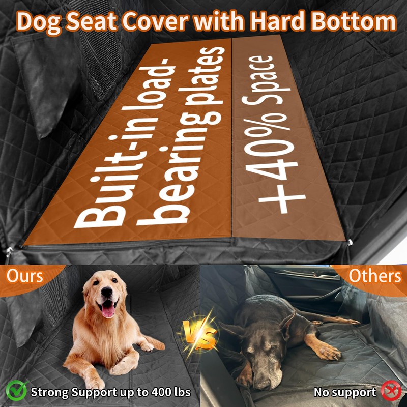 - [Anti-skid and safe]-The back seat cover hard bottom uses upgraded accessories to ensure the safety and comfort of your dog.The hammock design protects your dog from potential falls when suddenly stops or moves,ensures their safety and minimizes interference when driving.