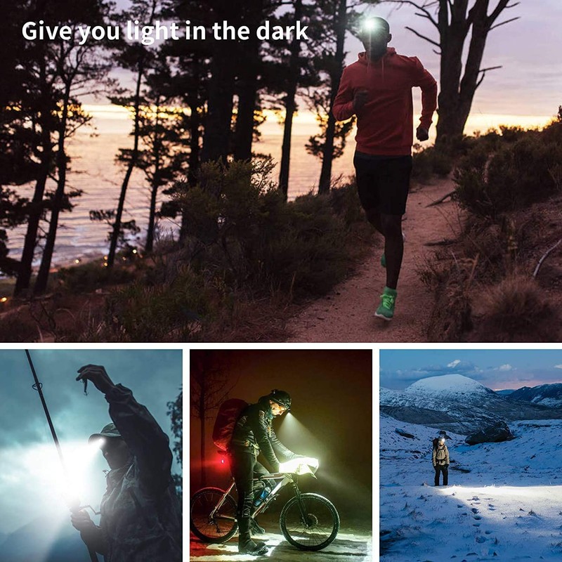- Impermeable IP68: Impermeable IP68 headlamp y está protegido contra salpicaduras de agua. Cuando llueve, lampara de cabeza funciona normalmente. Ideal para todas las actividades al aire libre como correr, acampar, montar en bicicleta.