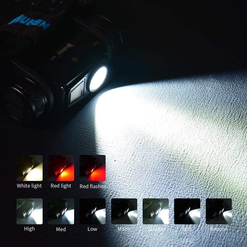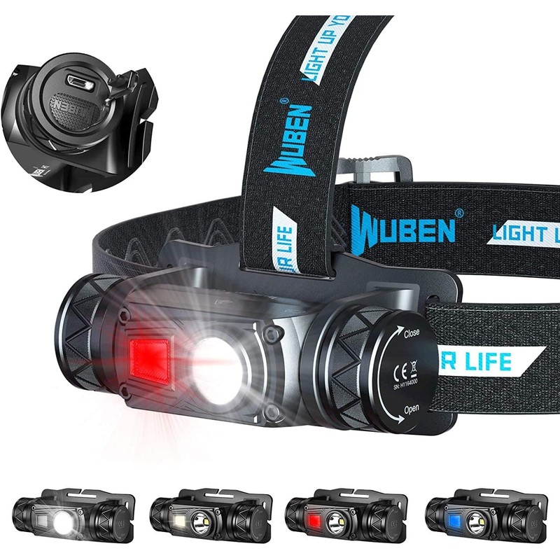 WUBEN H1 Lámpara de Cabeza Recargable Lámpara para Cabeza USB Linterna Frontal LED Recargable Linterna Frontal led Recargable de Faros Headlamp Lampara Cabeza 1200 Lúmenes,10 Modos,IP68 Impermeable