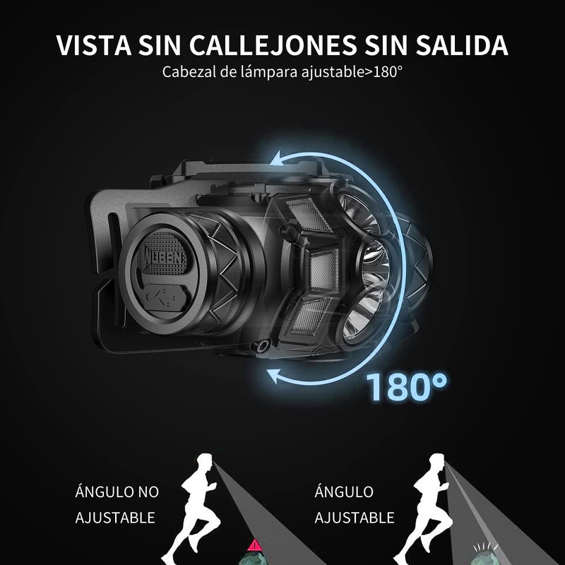 - Ajustable Y Fácil de llevar:La linterna frontal de se puedegira 180 °, con un fácil movimiento hacia arriba o hacia abajo. Su peso es de tan solo 102 g(Con batería)peso ligero y diadema antideslizante elástica ajustable perfecta para aquellos que necesitan una iluminación cómoda.