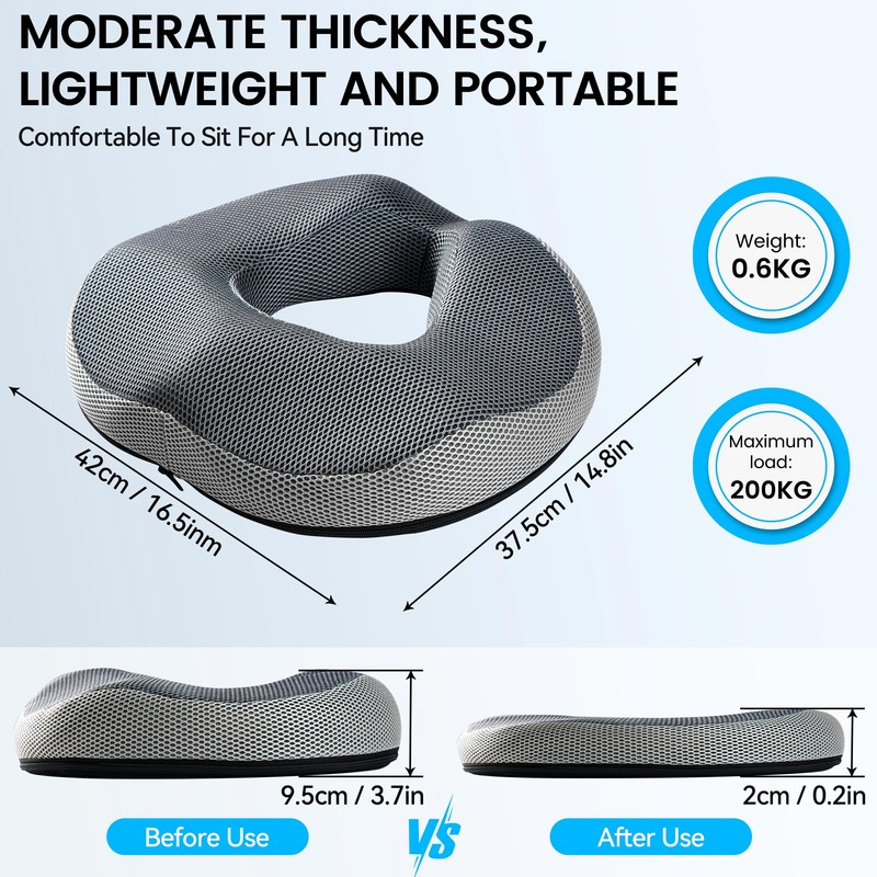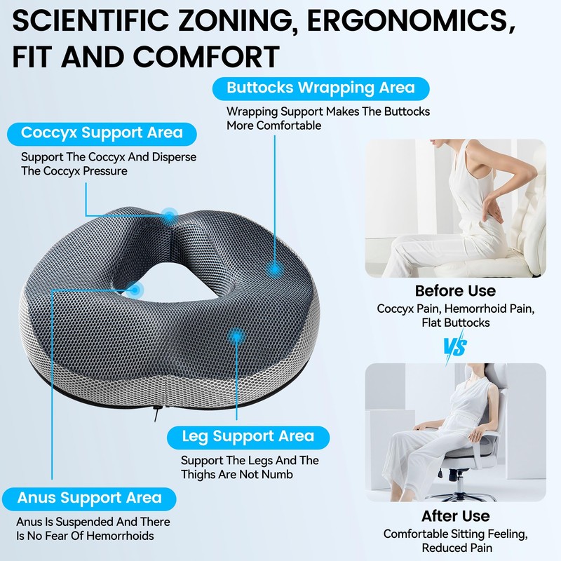 Experience unparalleled comfort and support! Our seat cushion is specially designed for people who sit for a long time and suffer from inconvenience. It helps to improve sitting posture and relieve pain. Especially suitable for different groups of people such as hemorrhoid patients, post-operative patients, mothers and the elderly to reduce the risk of hemorrhoids or the pain caused by hemorrhoids.