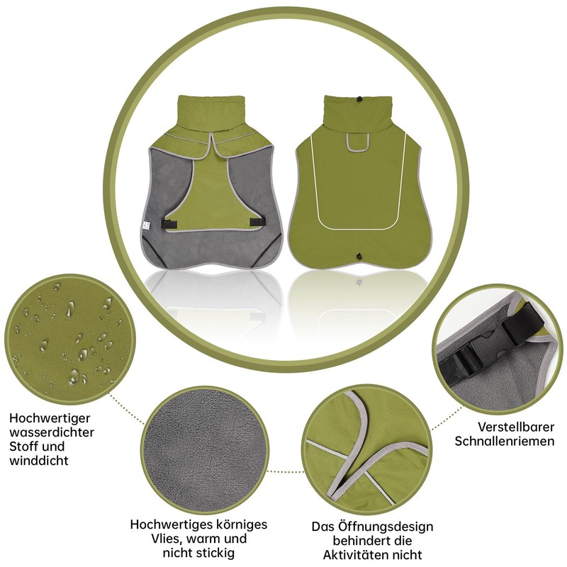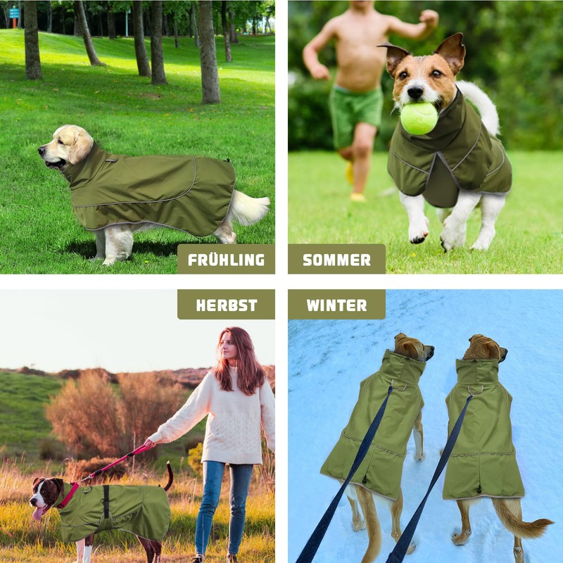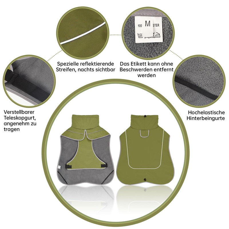 - SAFETY REFLECTIVE PROTECTION: The reflective strips on the waterproof dog coat ensure safety in the dark. Through light reflection, you and other road users are able to detect your dog even in poor visibility conditions and protect it from possible dangers at night.