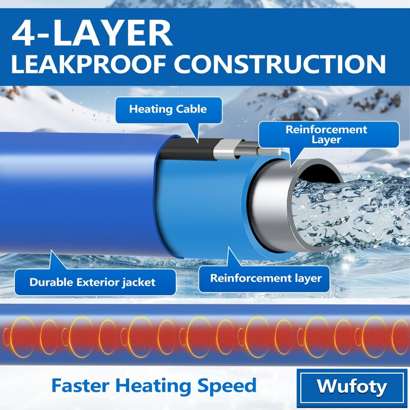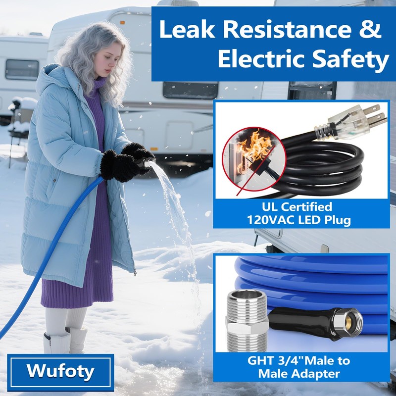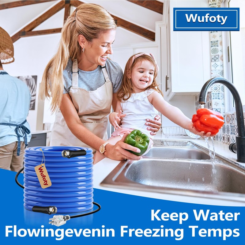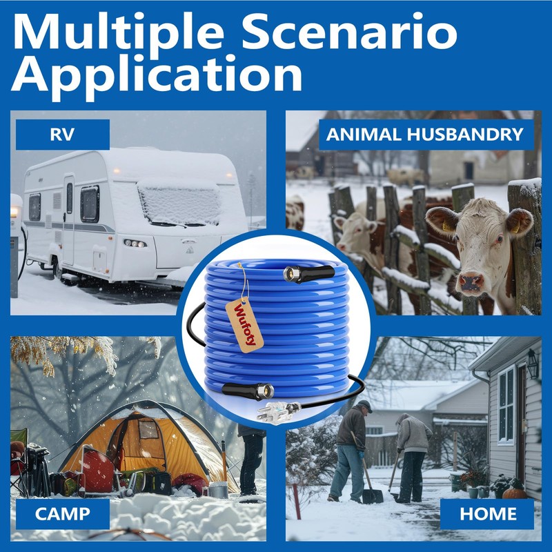 The Wufoty heated hose is a drinking water safe hose, that plugs into a standard 120 volt socket, to keep hose from freezing. Can be used in RV、family, garden, camping, travel, etc.any watering applications in below freezing temperatures.