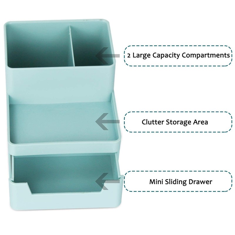 WuGeShop デスクペンシルペンホルダー 引き出し付き プラスチックデスクトップステーショナリーオーガナイザー 多機能ストレージキャディ オフィス 自宅 学校 教室用