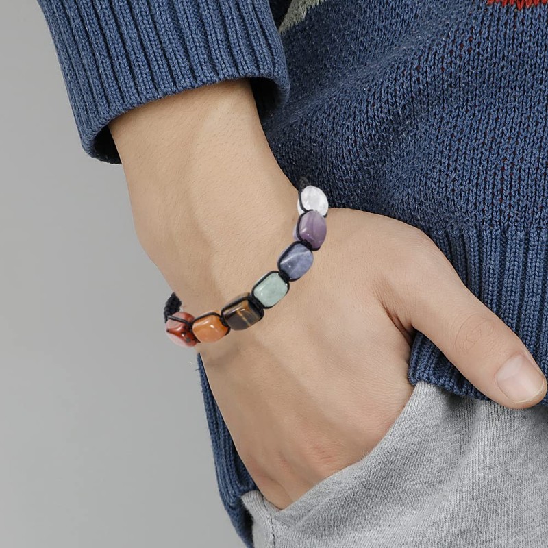 WULILONG 7 Chakra Crystal Bracelet Reiki Healing Crystal Gemstone Yoga Stone Beaded Braided Bracelet Bracelets for Women Anxiety Braided Bracelet Adjustable Jewellery (#2)
