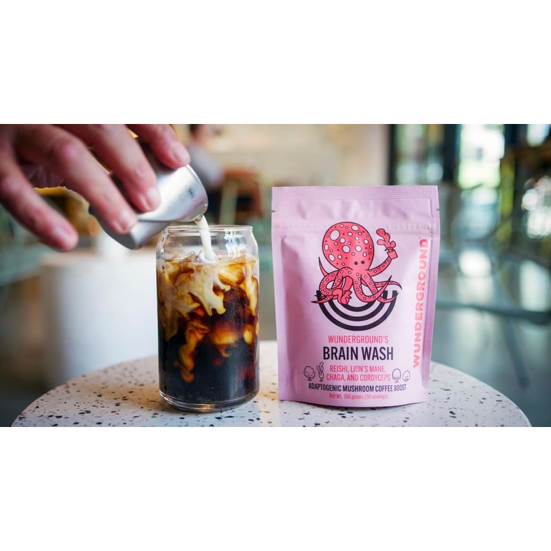 Wunderground Brain Wash Organic Mushroom Superboost Powder for Coffee, Tea, & Water - Cordyceps, Lion's Mane, Chaga, & Reishi Adaptogenic Mushrooms for Focus & Energy - 30-Serving Pouch
