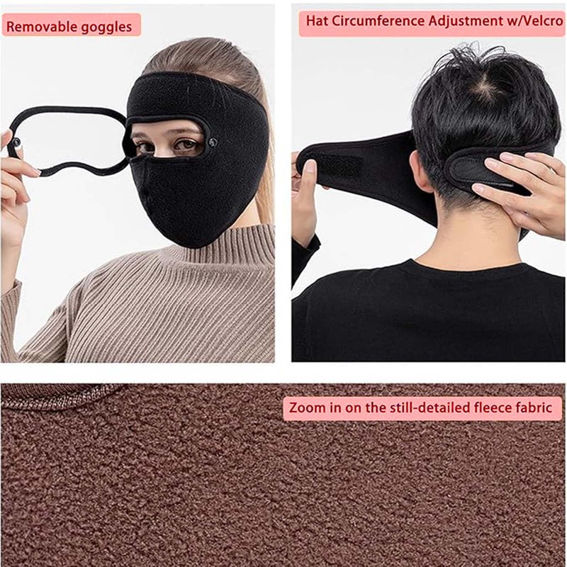 - All-round warmth: ear protection design, 360 degrees of warmth, full face surround, more suitable for the face, removable goggles cap adjusting Velcro, easy to travel in winter, winter cold feeling. Upgraded neck guard to keep warm, the whole neck around, more suitable for the neck, winter travel convenient