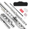 WUQIMUSC 17 hole Flute Closed hole C flute for beginner Cleaning kit with Gloves Cloth Tuning Rod hard Case Nickel Siver Flute instrument Student flute (Closed Hole,silver)