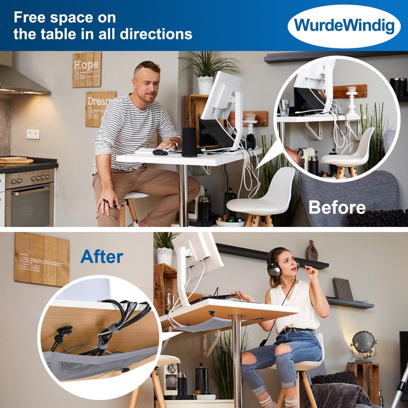WurdeWindig Cable Management Net Under Desk - Cable Manager Kit-Flexible Unde...