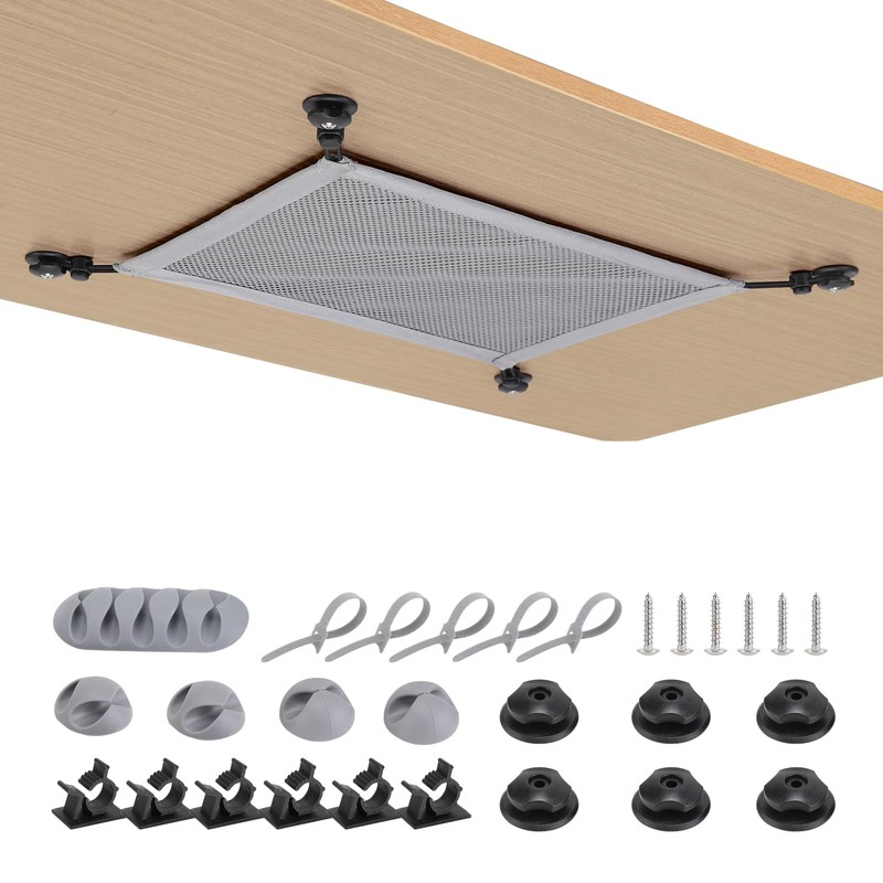 WurdeWindig Cable Management Net Under Desk - Cable Manager Kit-Flexible Under Desk Mesh- PC Cable Organization(Grey, 40 * 28cm).