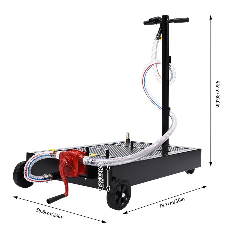 Our meticulously crafted oil drain pan, equipped with a manual rotary pump, is ingeniously designed to facilitate an unparalleled and effortless collection and evacuation of waste fluids. With its capacious 15gal capacity, this high-performance apparatus transcends the boundaries of conventional usage, seamlessly catering to both the realms of automotive maintenance and industrial applications alike.
