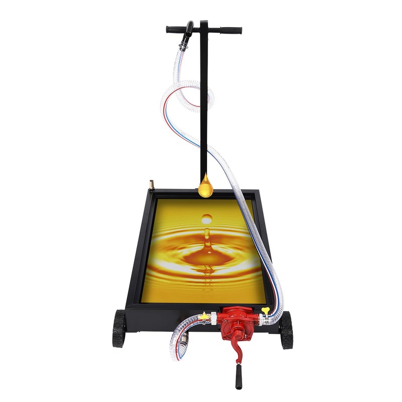 - 【Flexible to Move and Fix】: Equipped with four wheels ( two 5'' rear wheels and two 2.5'' universal wheels with brakes) and an ergonomically designed T-handle, you can easily move and secure the oil drain pan anywhere, making it ideal for the oil catching underneath the car