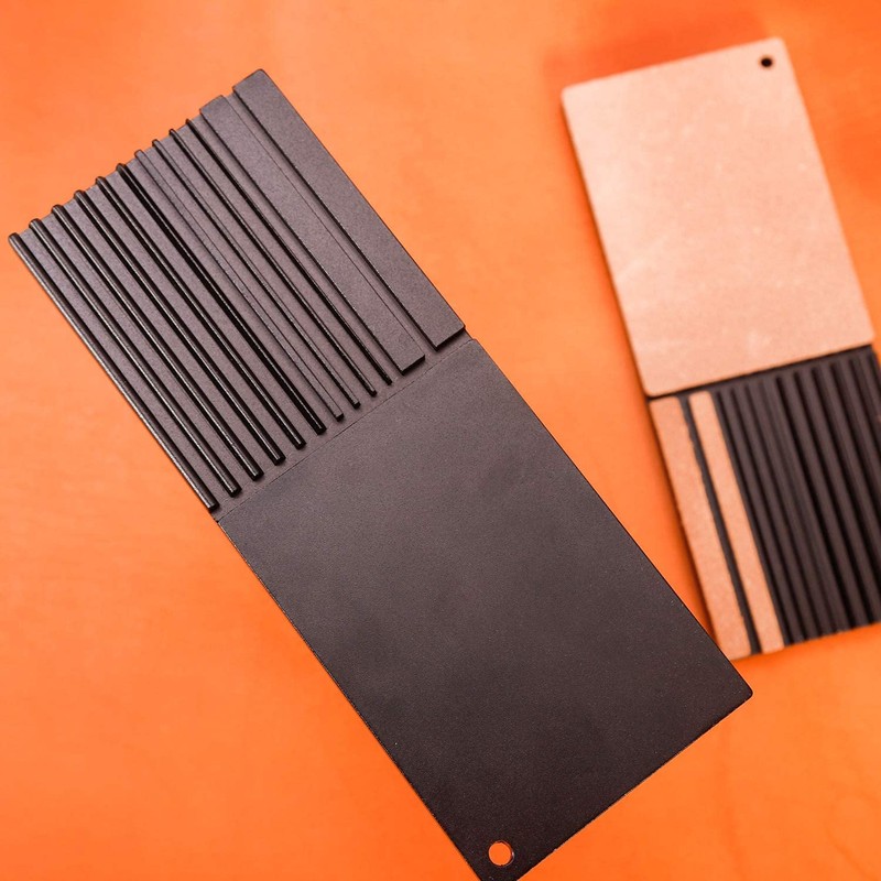 - We manufacture our own knives and other leather tools, so we have absolute confidence in the quality of our tools sharpeners.We know how important the materials are for making leather tools sharpeners.We use aluminum alloy CNC engraving, which enables it to fit the bottom groove of the edge shaper more accurately.