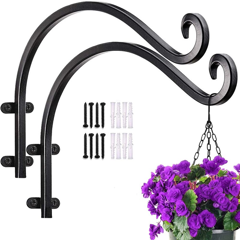 - DESIGN The hand forged curved hanging hangers look elegant while preventing hanging baskets from falling off to increase safety. Classic black is suitable for modern, retro, rustic and other different garden styles