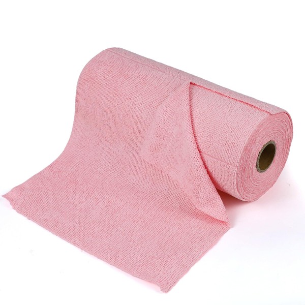 wuyaoyao 50PCS Microfiber Cleaning Cloth Roll, 10"×10" Tear Away Microfiber Towels, Reusable Washable Cloth Paper Towels, Multi-Purpose Cleaning Rags for Car Home Kitchen Garage Shop (Pink)