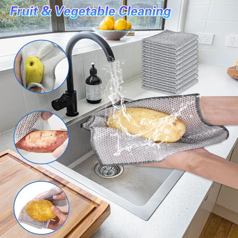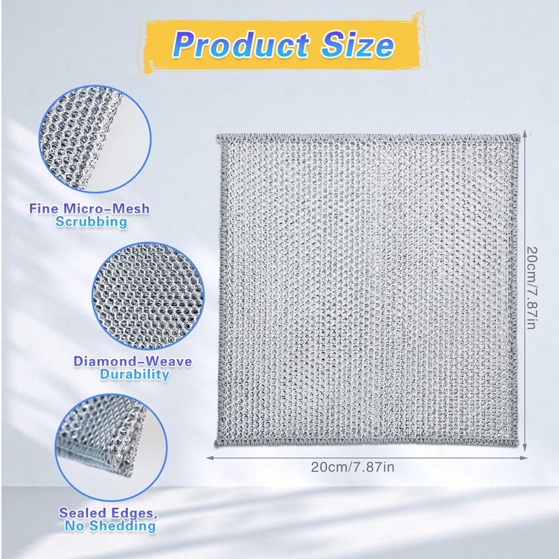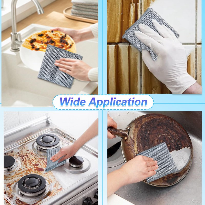 • Essential Kitchen Workhorses: An indispensable kitchen dish cloth and kitchen wash cloths solution. Perfect as kitchen rags for countertops, stovetops, sinks, and appliances. This versatile multipurpose wire dishwashing rags pack provides reliable wash cloths for all kitchen cleaning challengesMulti-Use Cleaning Champions: Don't limit these multipurpose wire miracle cleaning cloths to just dishes! Ideal as cleaning cloth for bathroom surfaces, outdoor grills, tools, or car parts. This bulk 15-pack of wire dishwashing cloth/wire dish cloth/metal dish cloth tools ensures you always have a fresh, effective rag for cleaning ready to tackle any job