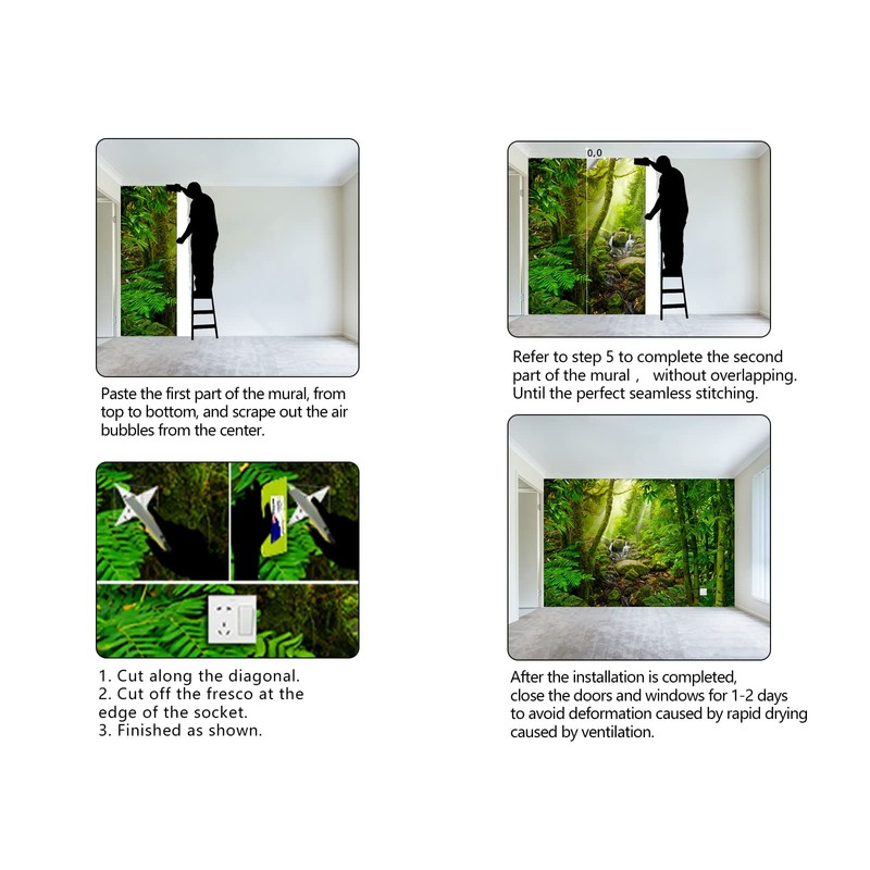 - It's easy to install: at the bottom of each mural we have a numbered sequence, You can refer to the instructions we provided and the main picture 6-7,just match the numbers and you'll be amazed!