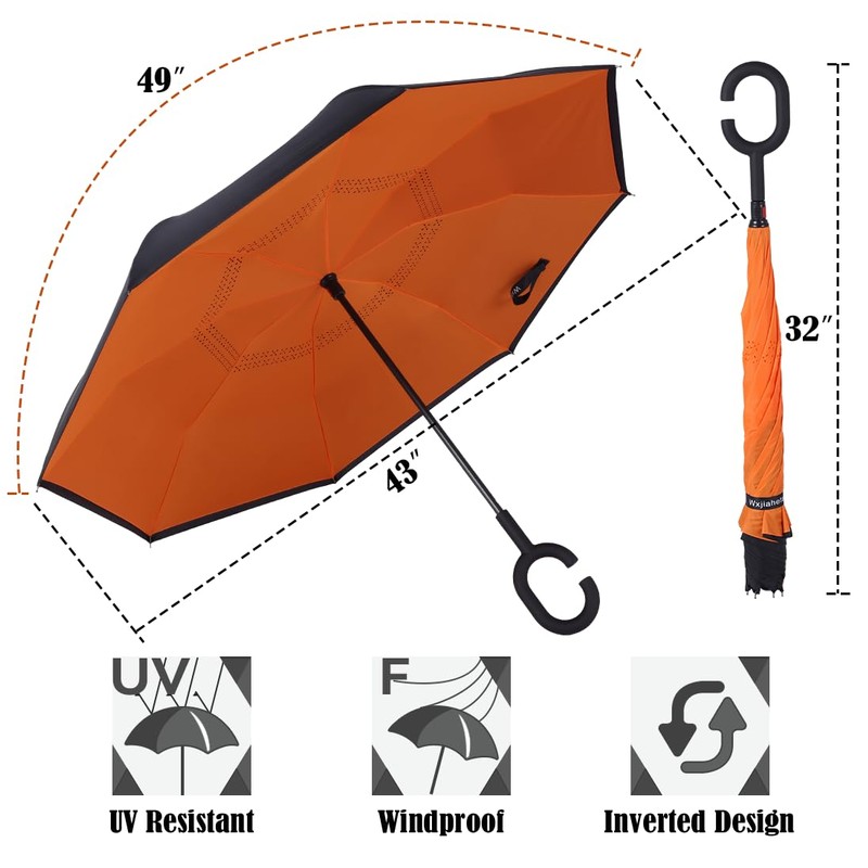 • Ideal Gift & Guarantee - This inside out umbrella is definitely a creative gift for parents, friends, colleagues etc. If anything goes wrong with your umbrella, contact us and we will send you a replacement, no return required.