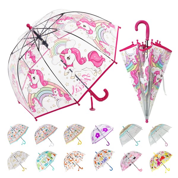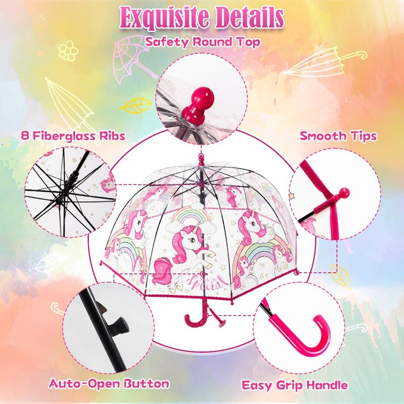 - 2.CLEAR UMBRELLA:The clear umbrella canopy is made of POE which allows your girls and boys to see the front clearly when walking in the rain.