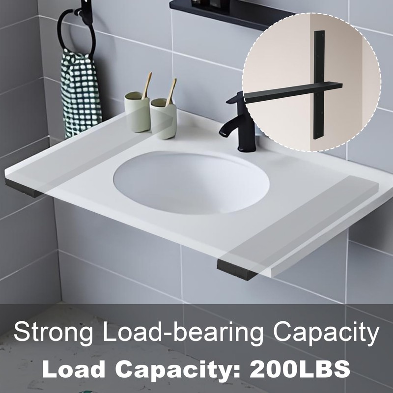 - Wide Application: The floating T-shaped shelf bracket can support various countertops, such as marble, quartz, granite countertops, thick wooden boards, etc. Very suitable for concealed DIY bathroom sinks, cantilever stands, shower stools, counters or tabletops