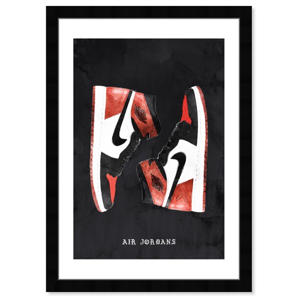 Wynwood Studio Fashion and Glam Modern Black Frame Paper - Classic Sneakers V, Wall Art for Living Room, Bedroom, and Bathroom, 13 in x 19 in, Black and Red Home Decor