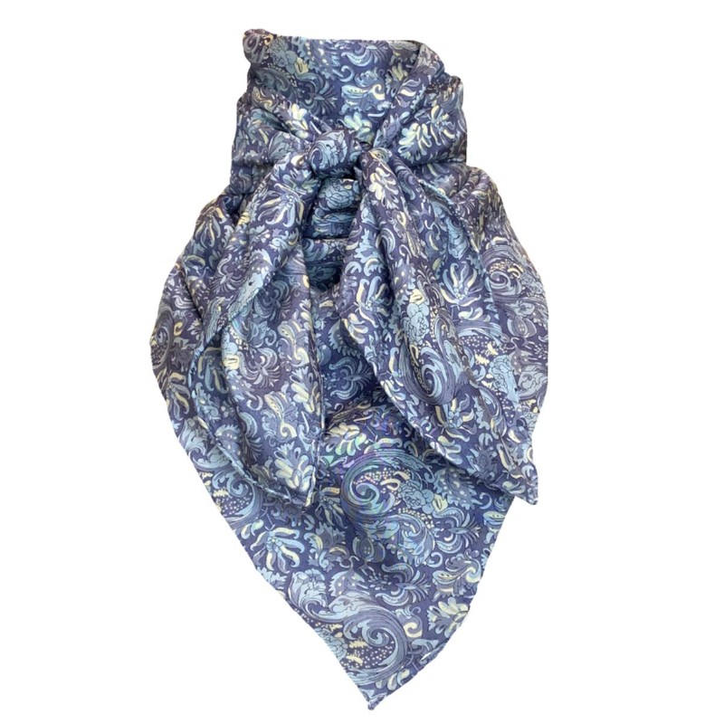 Wyoming Traders Frontier Calico Cowboy Wild Rag 100% Silk Scarf Bandana Multiple Colors 34.5" (#8 Blue)