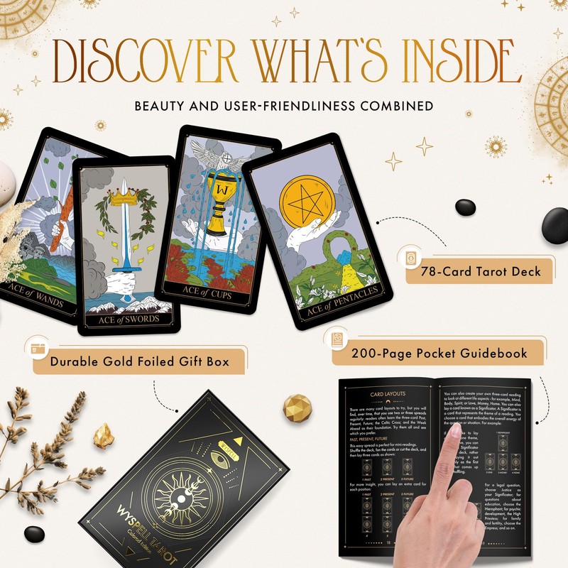 - Comprehensive Beginner Tarot Deck Guide: Delve into the secrets of the traditional tarot deck with our 200-page tarot cards guide book. Explore detailed explanations of tarot cards for beginners, diverse spreads, interpretations in love, career, and financial spheres