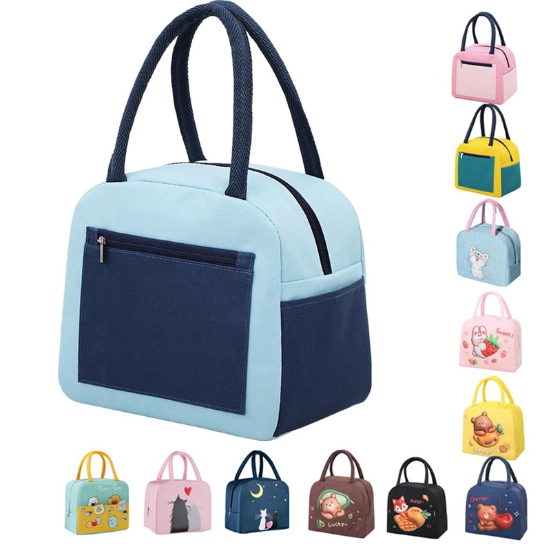 WYSUMMER Lunch Bag, Insulated Tote Bag for Women,Carton Insulated Lunch Box Cooler Bag Water-Resistant Lunch Organizer for Kids and Students Travel Picnic School (Navy)