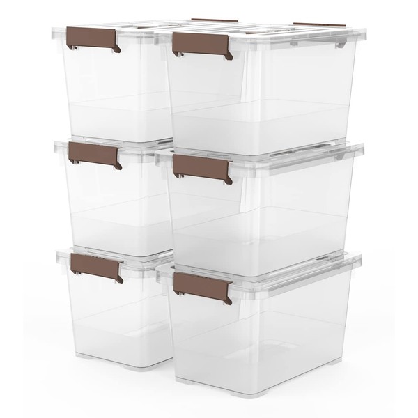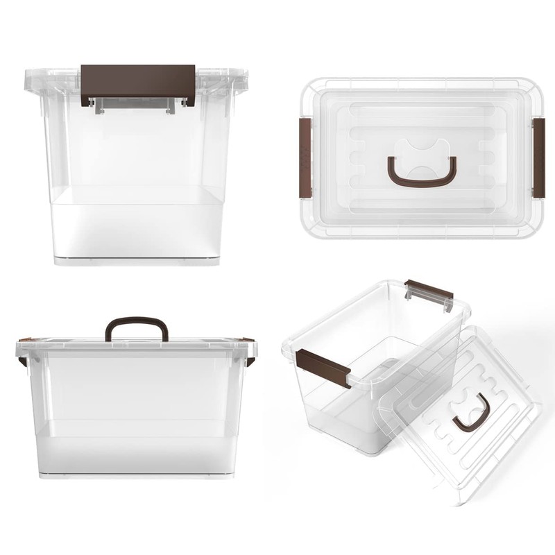 WYT WYT 6-Pack Clear 7 Quart Storage Latch Box/Bins, Plastic Stackable Latching Box with Brown Handle and Lid, Multi-Purpose, 7 Litre