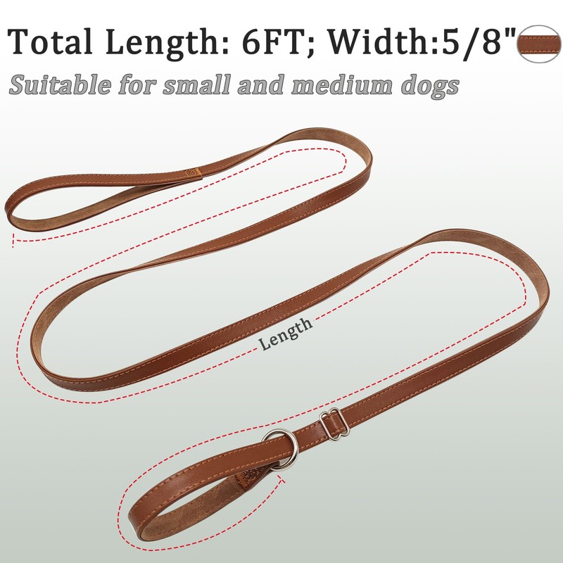WYuZe Leather Slip Lead Dog Leash 6 FT, 5/8" Wide Soft Slip Leather Leash and Collar, No-Pull Training Lead for Small Medium Dogs