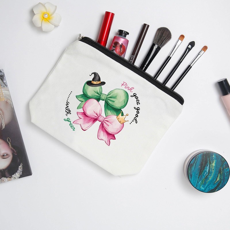 WZJHCL Witch Musical Quote Makeup Pouch Bag Bow Pink Goes Good With Green Cosmetic Kit Bag Broadway Witch Musical Lover Gift (Pink Green)