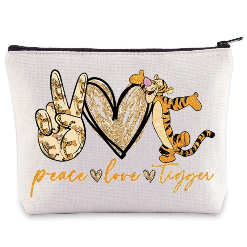 WZMPA Tigger - Bolsa de cosméticos para aficionados a la paz, amor, Tigger, maquillaje, bolsa con cierre, bolsa de Tigger Merchandise, Love tigger