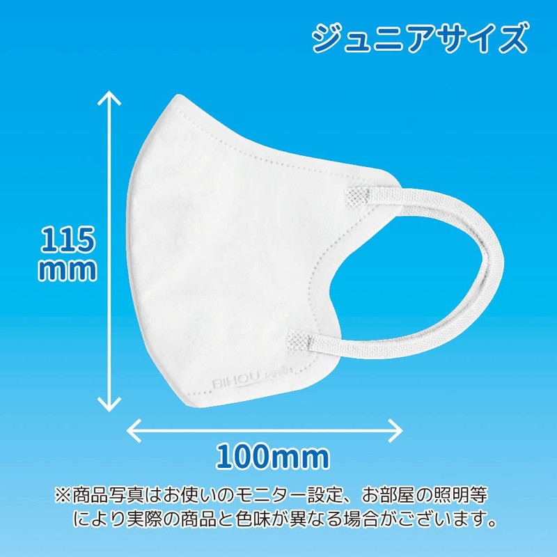 【ビホウマスク 安心の日本製 自社製の国産高機能フィルタ使用! 幼児から小学校低学年のお子様に最適なジュニアサイズ フェイスラインにしっかりフィット(小顔...