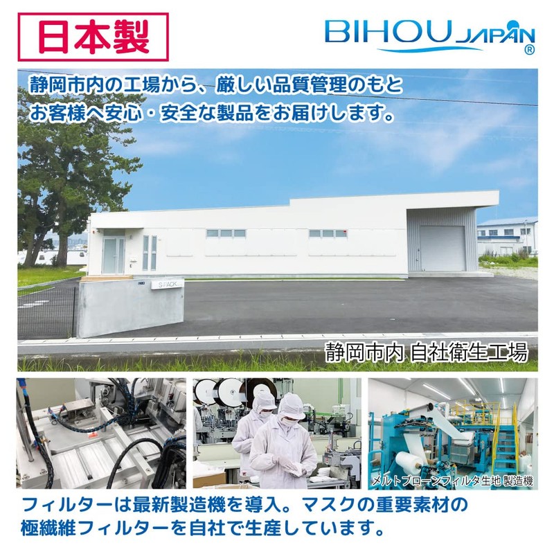 - 目が細かく密度の高い国産高性能フィルタを使用!耳にやさしいふわふわ太ゴム仕様。(ストレス軽減タイプ)工業会会員マーク入り。