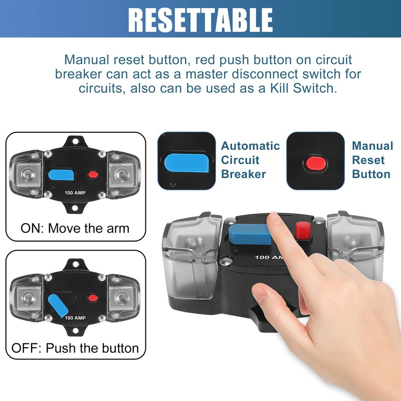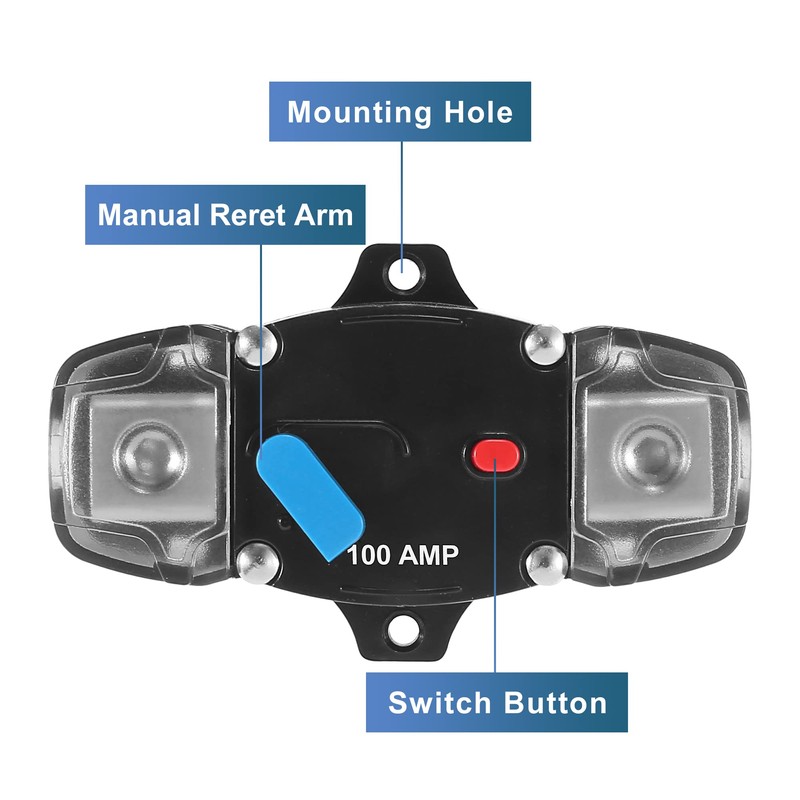 - Rated Power: Current 100A, newly designed manual reset circuit breaker, for all 12, 24 volt and 48 volt systems