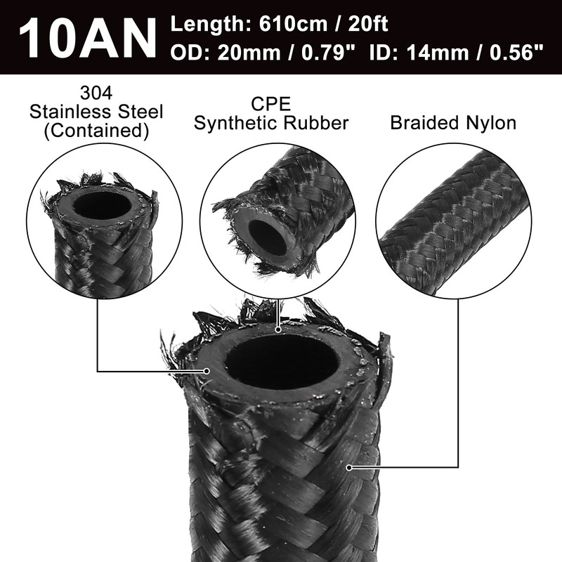 X AUTOHAUX 20ft 10AN Fuel Hose AN10 5/8" Universal Braided Nylon Stainless Steel CPE Oil Fuel Gas Line Hose Black