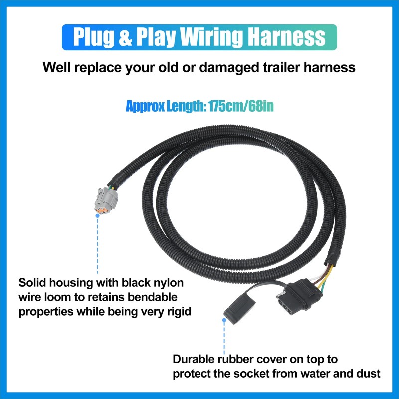 - Include: 1x 4 Way Flat Trailer Harness Connectors, 2x zip ties, 1x product manuals