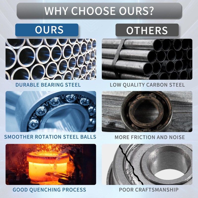 - Easy / Professional Installation:Our ball bearing provide stable performance with quenching process, just press these low friction bearing evenly to prevent the bearing from tilting or skewing. They support both radial and axially loads under high speed.
