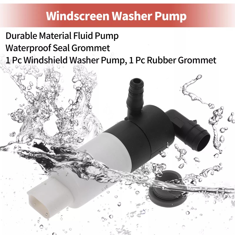 - The windshield cleaning fluid pump is made of plastic material. Durable, can provide you stable and efficient water spraying effectt and with a rubber grommet, have good sealing, which can prevent leaks of cleaning fluid.